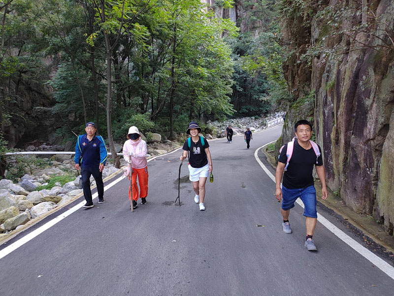 此時爬堯山特別適宜,晴空萬里,同時由于昨天剛下過雨,空氣也非常濕潤,溫度也非常涼爽。公司里有的人乘坐索道上至中途,然后爬上頂峰,有的人直接徒步爬至頂峰。